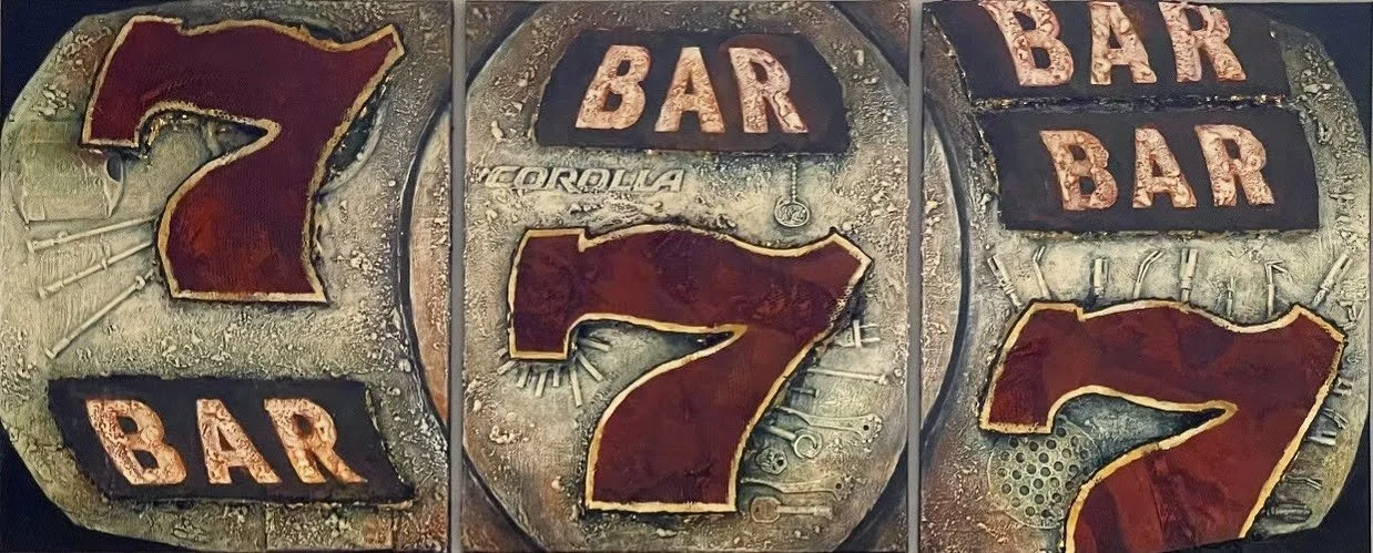 16x20(3) cardboard, gold leaf, found objects, gap filler, acrylic. 2021
